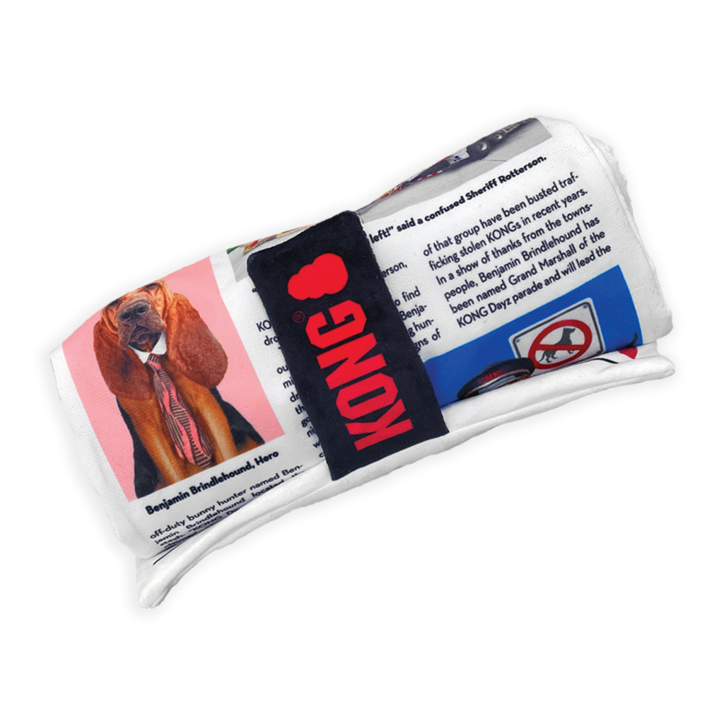 KONG Daily delivers a 3-foot long special edition that stays closed with a hook-and-loop strap to make an ideal tug toy and unfurls for instinct-satisfying thrashing fun. This journal of joy delivers a doggy digest with 6 squeakers that prolong play and a soft, baby plush side ideal for napping after catching up with the headlines.
