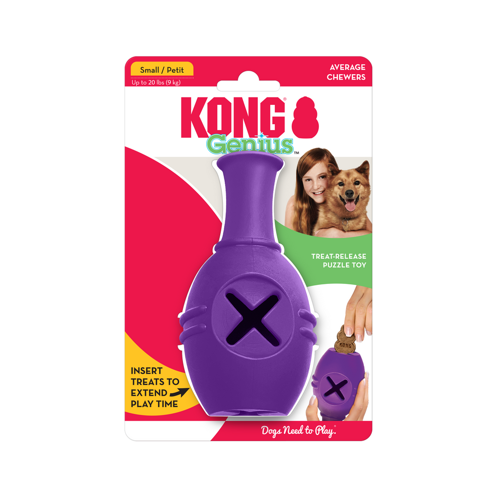 The KONG Genius Leo is named in honor of Leonardo Da Vinci and is designed to stimulate a dog’s curiosity and hold its attention. The toy is great for helping combat boredom and separation anxiety and can be used as a treat dispensing toy on its own - or connected to the Genius Mike for an increased challenge. Genius toys are great for puppies and adult dogs alike.