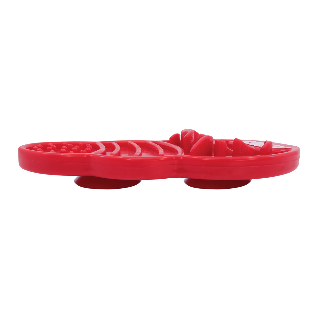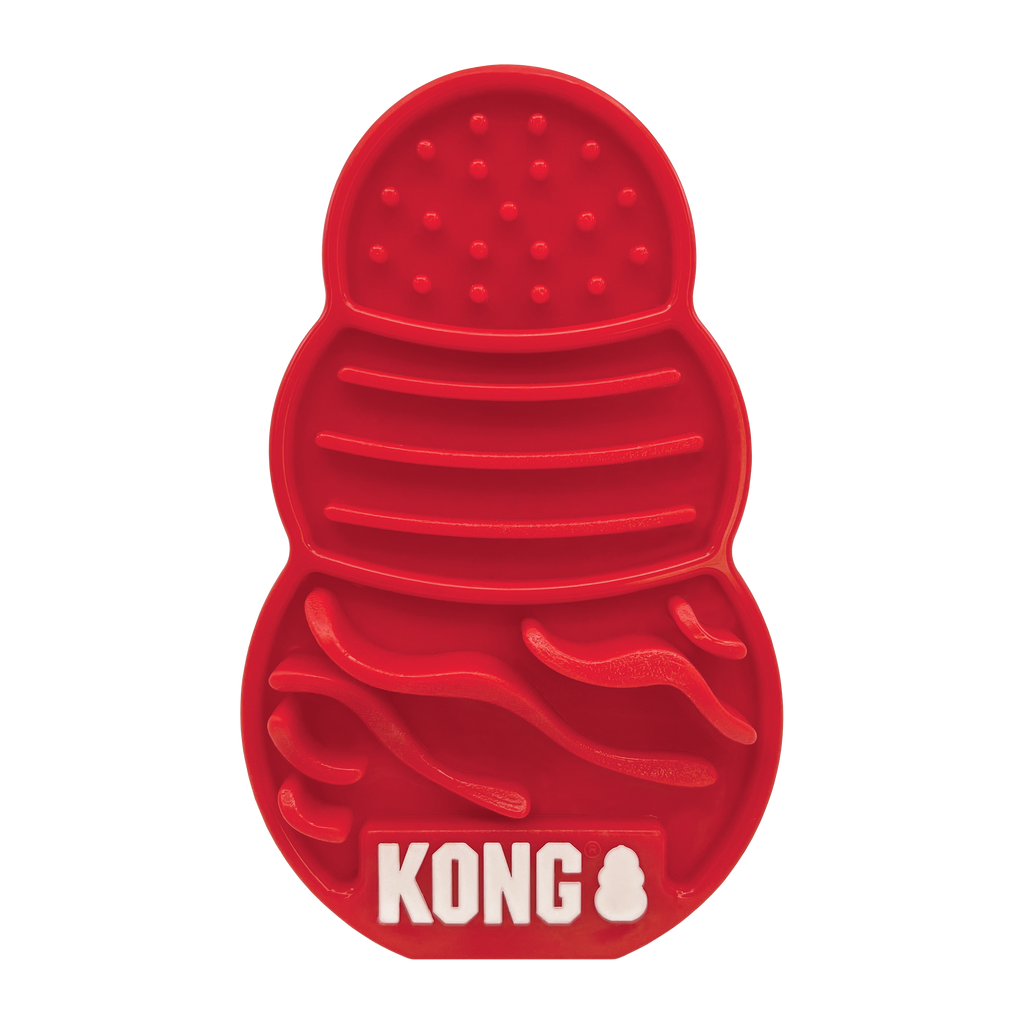 KONG Licks ridges and grooves hold Easy Treat, peanut butter, kibble, etc. for long-lasting licking. Fights boredom and occupies distraction during exams, baths and nail trims. Plus, licking releases endorphins that help soothe dogs. Two suction cups stick to flat surfaces for a movable feast of fun. Different ridge shapes hold variety of food, keeps pups interested and helps clean tongue and teeth.